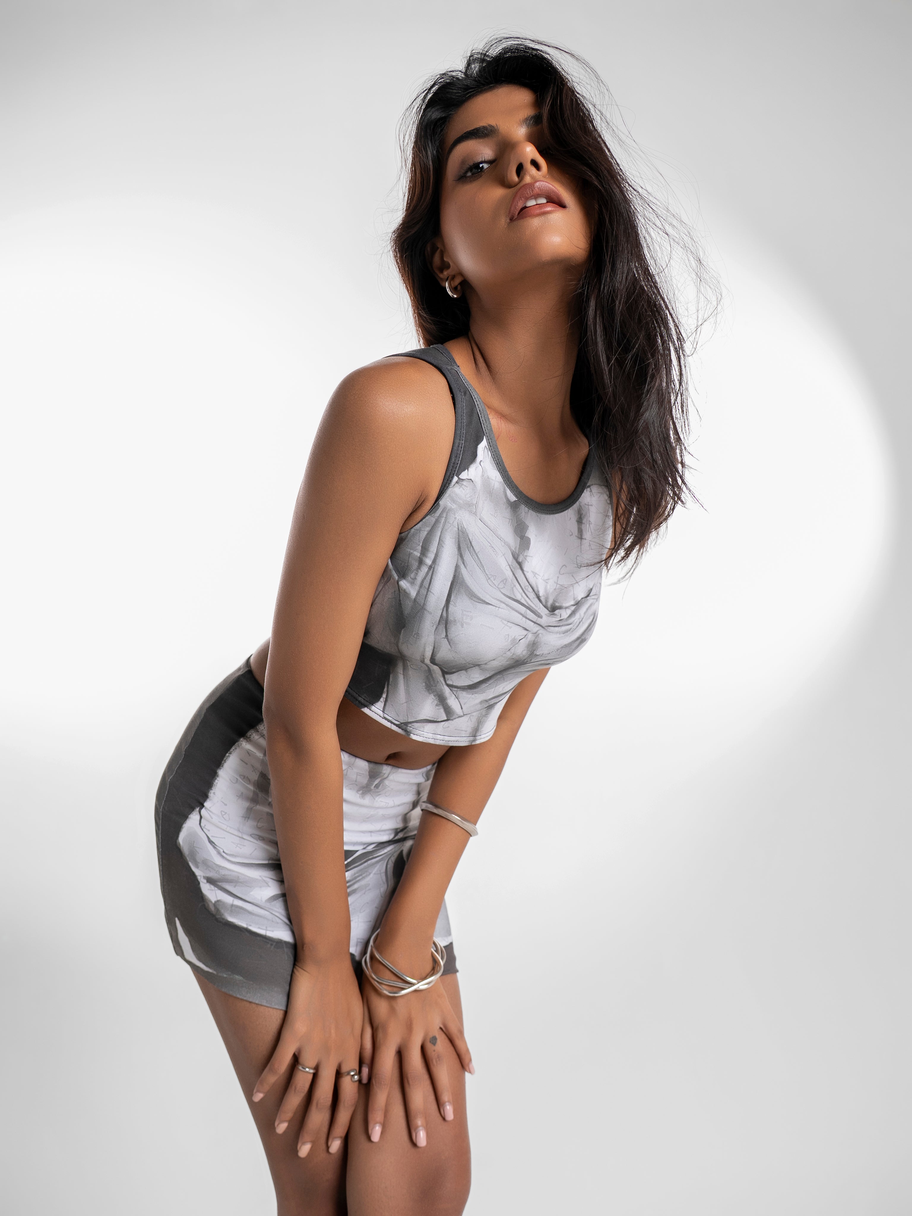 A sleek monochrome version of the Marble Cast Co-ord Set, blending Greek sculpture-inspired marble print with a modern street-chic silhouette.